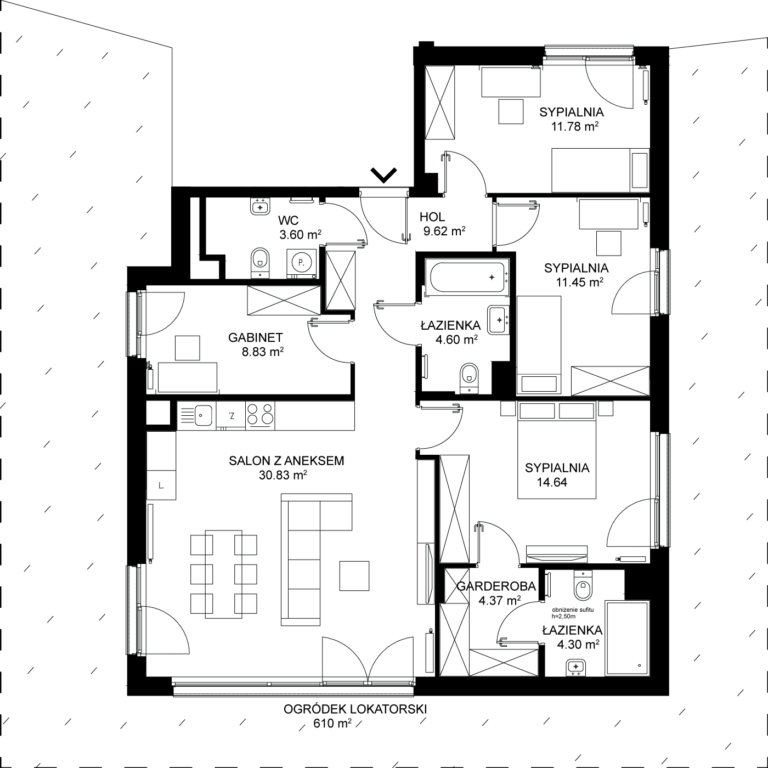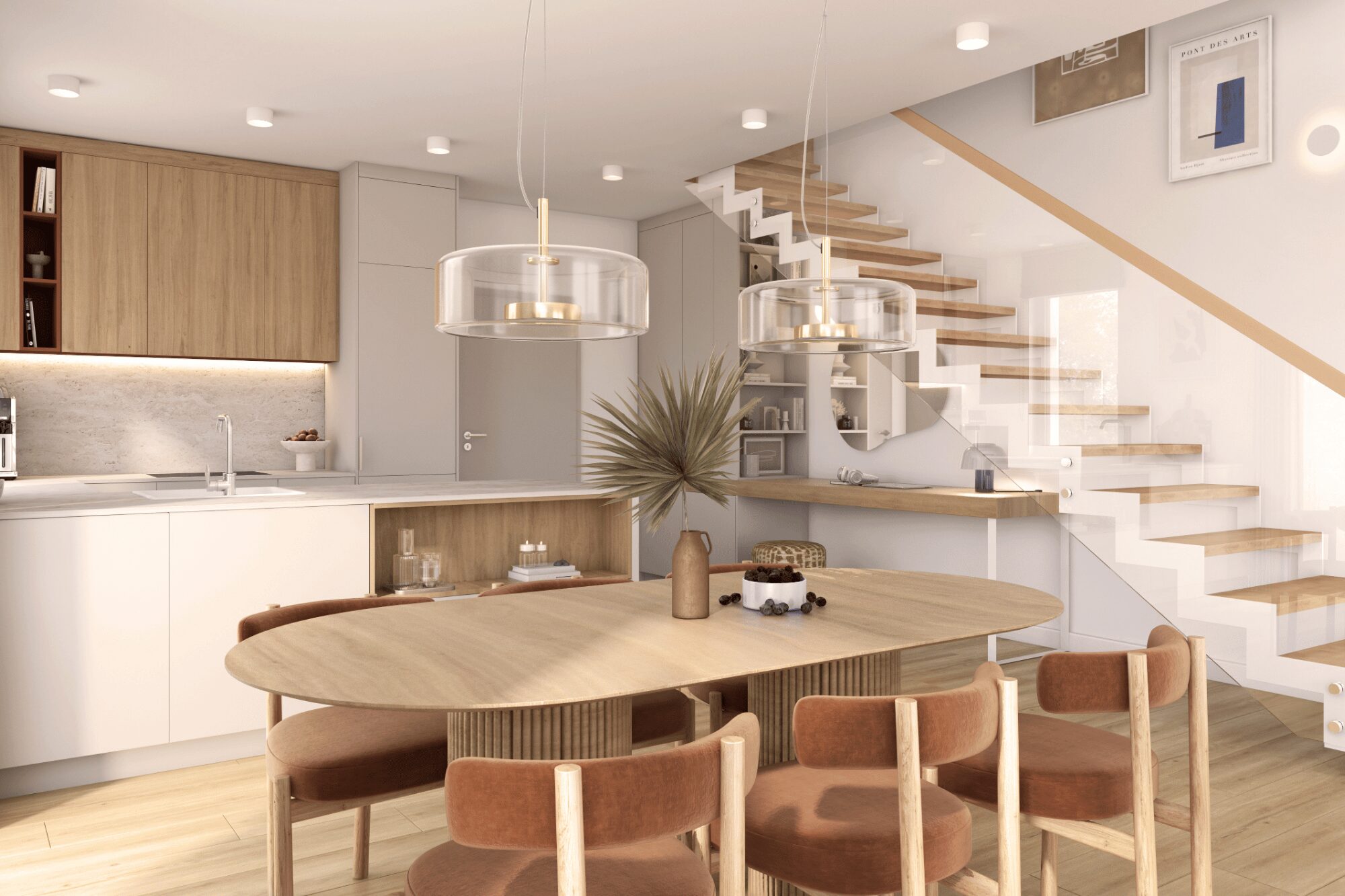 Duże salony z aneksem kuchennym, główne sypialnie tzw. master bedroom z garderobą i łazienką oraz wyraźny podział na strefę dzienną i prywatną sprzyjają właściwemu rytmowi życia.