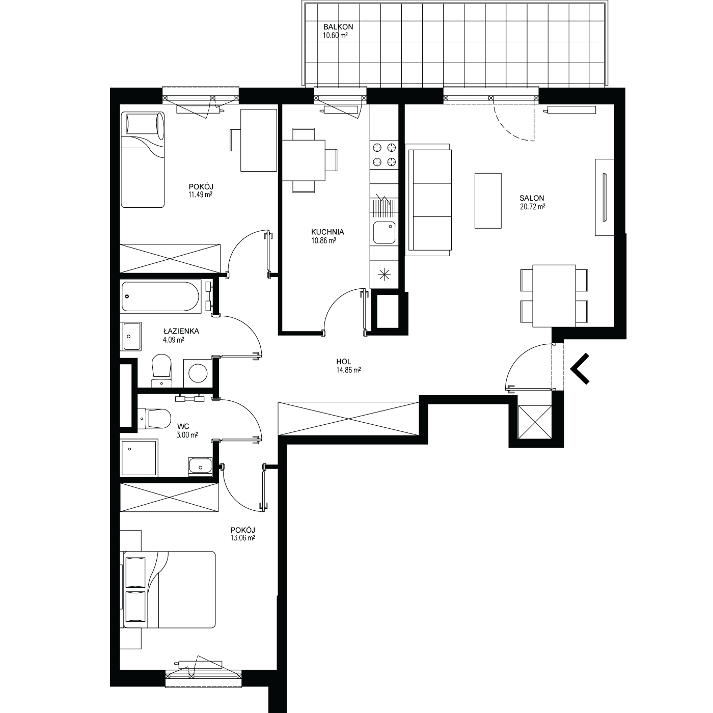 Atuty dwie łazienki, osobna kuchnia, balkon