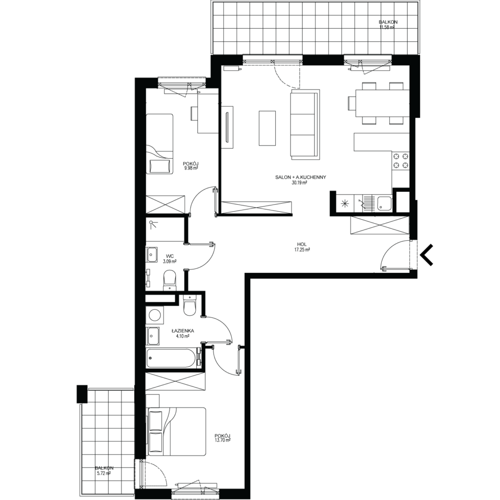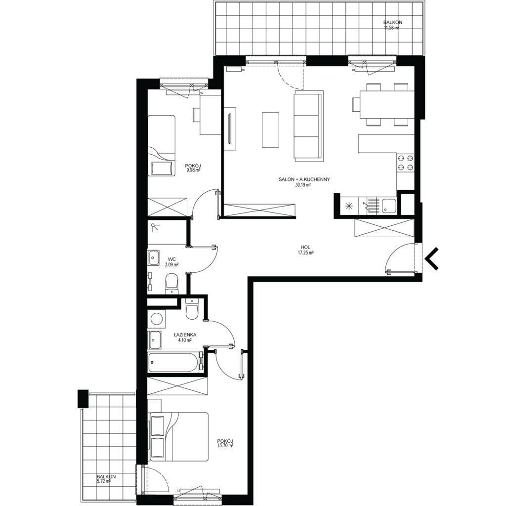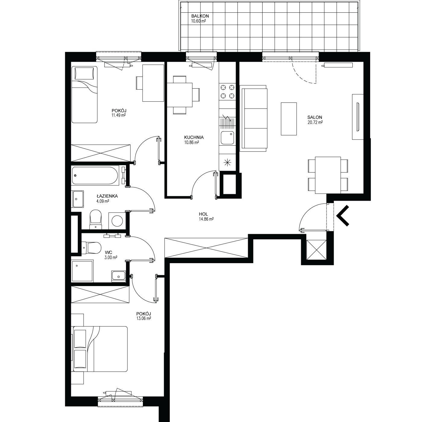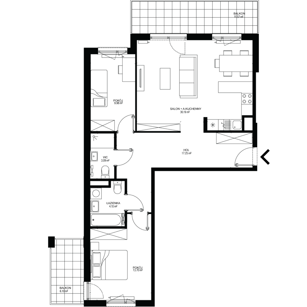 Atuty dwie łazienki, osobna kuchnia, balkon