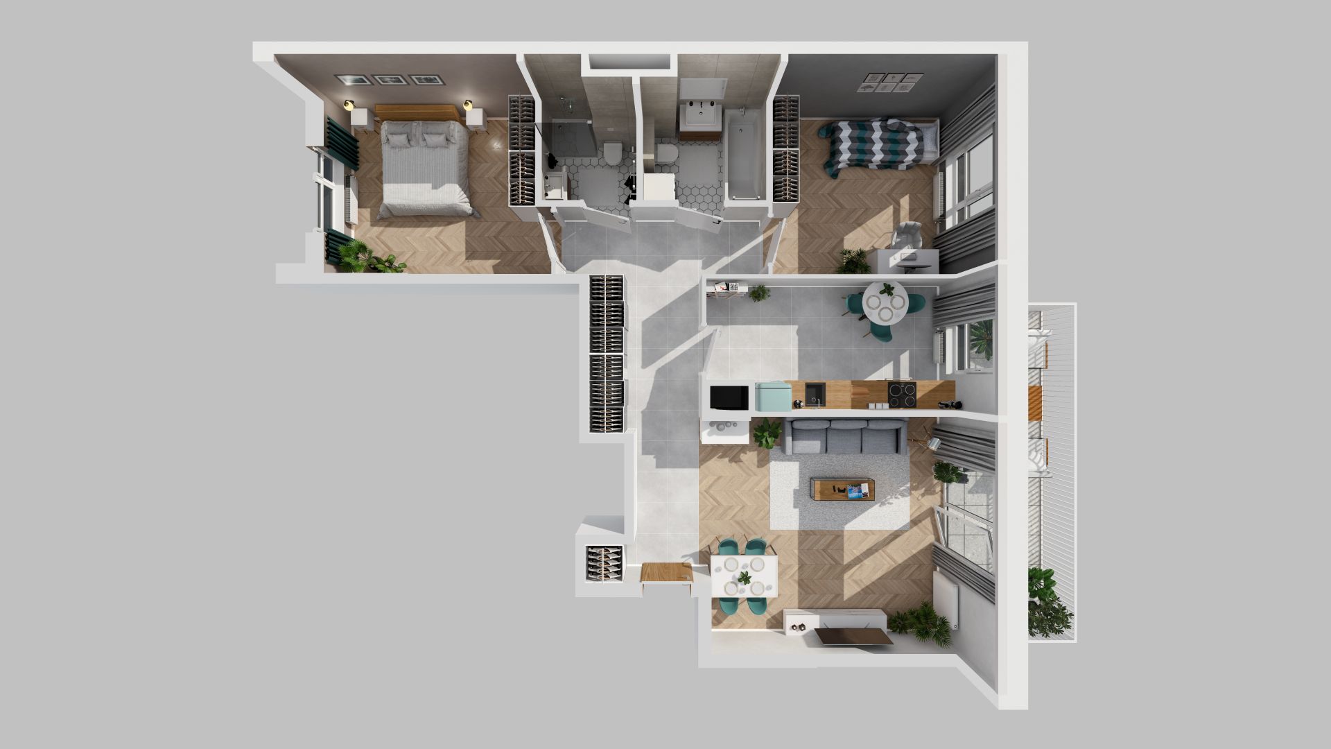 Atuty dwie łazienki, osobna kuchnia, balkon