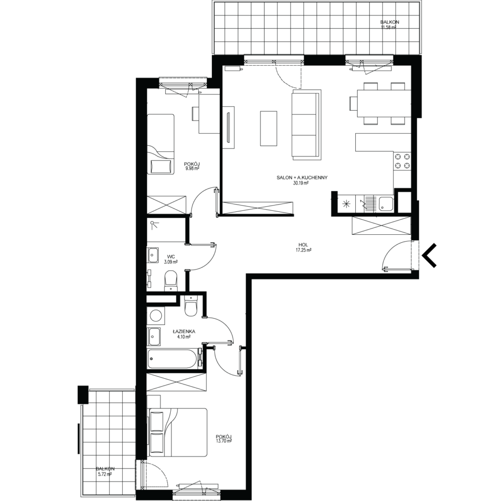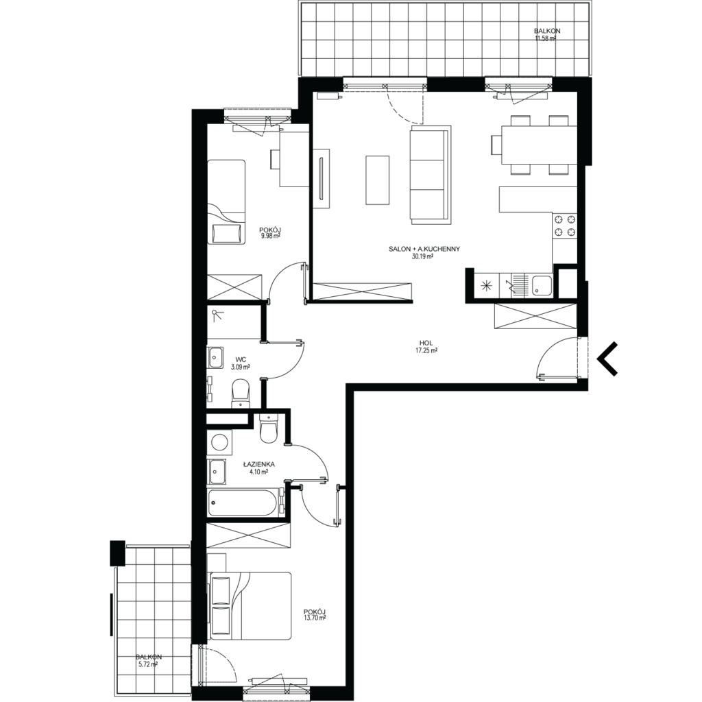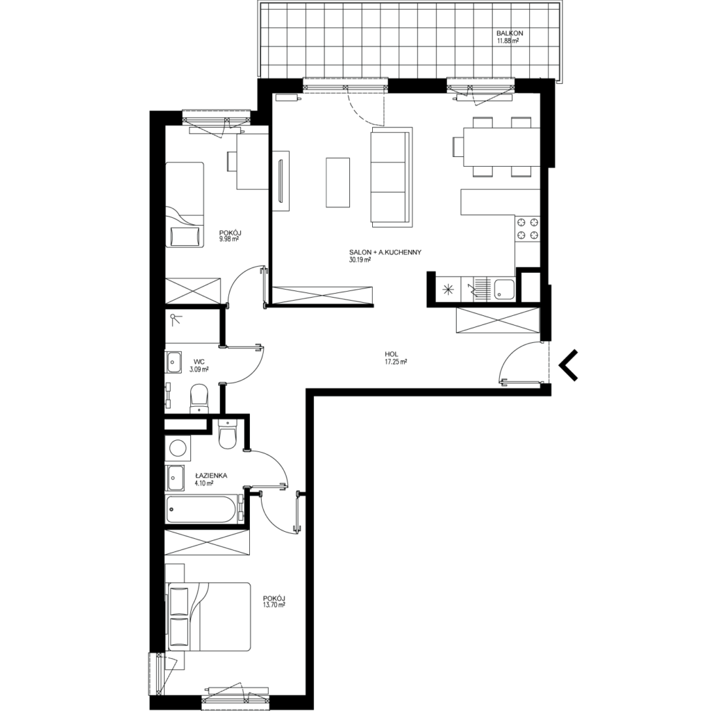 Atuty dwie łazienki, osobna kuchnia, balkon