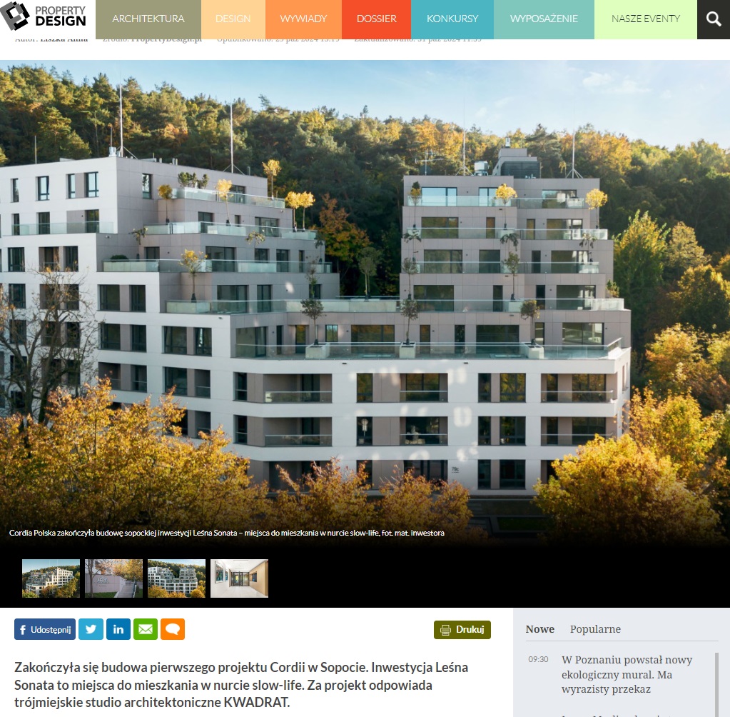 – „Leśna Sonata to miejsce zarówno dla osób szukających wyjątkowego apartamentu, w którym mogą zamieszkać, jak i dla tych, którzy chcieliby mieć wymarzony „second home” na czas swoich pobytów w najpiękniejszym kurorcie nad polskim morzem. Projekt łączy w sobie komfort i wygodę miejskich apartamentowców z zaciszną, zieloną naturą wokół” – zapewnia Tomasz Łapiński, dyrektor zarządzający inwestycjami mieszkaniowymi w Cordia Polska.
