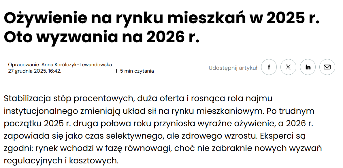 businessinsider.com.pl: Ożywienie na rynku mieszkań w 2025 r. Oto wyzwania na 2026 r.