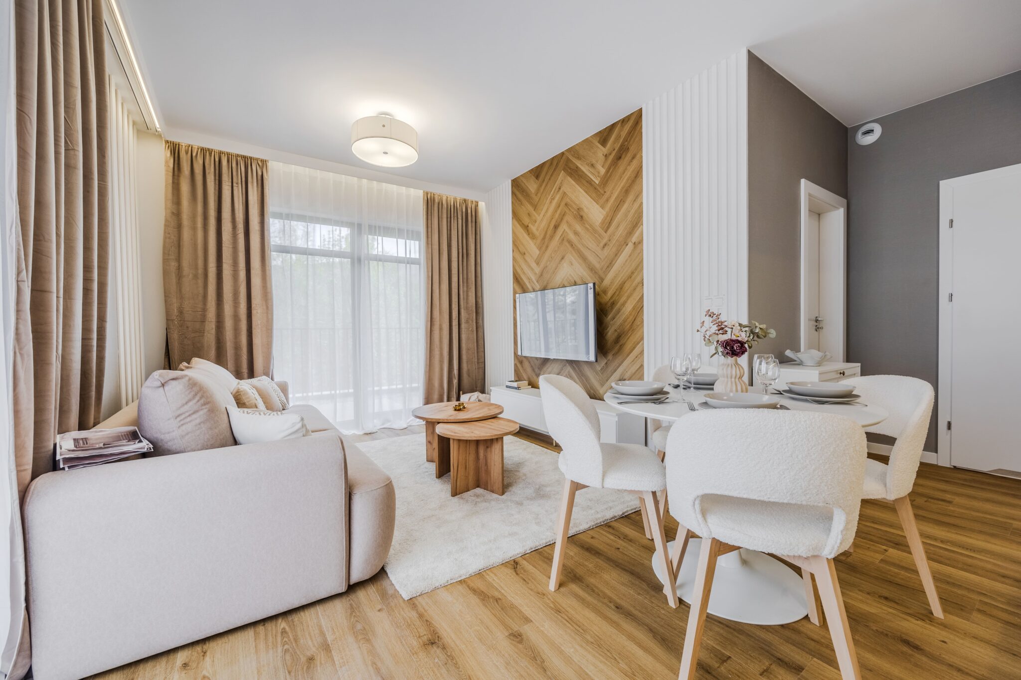 Wykończenie mieszkania to wymagający i czasochłonny proces. Dla klientów ceniących sobie wygodę i oczekujących rozwiązań dopasowanych do indywidualnych potrzeb, wraz z naszymi partnerskimi pracowniami wnętrz, przygotowaliśmy specjalną ofertę. Kupując wymarzone mieszkanie możesz wykończyć je pod klucz i wprowadzić się do gotowego domu.
